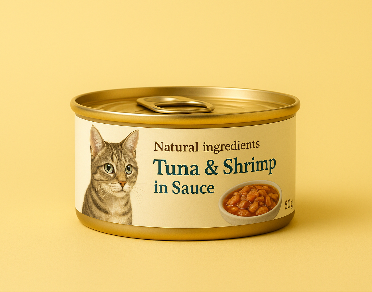 Satisfy your cat's high protein needs with our organic canned cat food, made with shrimp and tuna for a grain-free meal. Perfect for indoor cats, this nutritious meal with a thick sauce is rich in protein and free from artificial ingredients, ensuring a healthy and indulgent dining experience for your beloved feline friend.